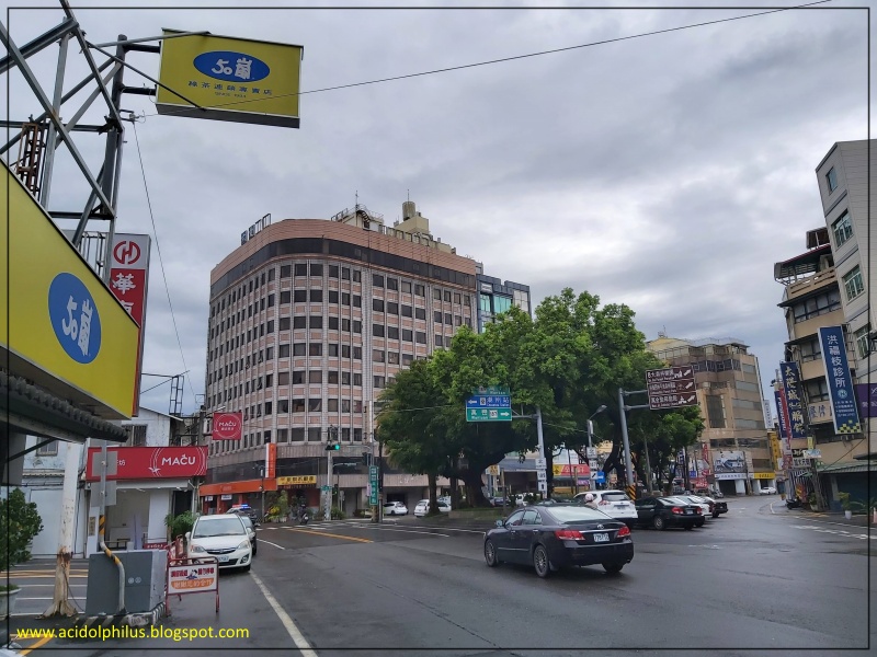 This is downtown, across the street from Chaozhou's "cold hot ice" dessert shop. The Starbucks and the Culture Park are down the road to the right. If you're visiting the area, be very careful when passing through these circular intersections. 這是潮州的市區, 冷熱冰店就在這對面 . 右邊那條路是往星巴克跟日式歷史建築文化園區 . 在潮州過這種路口要非常小心 .